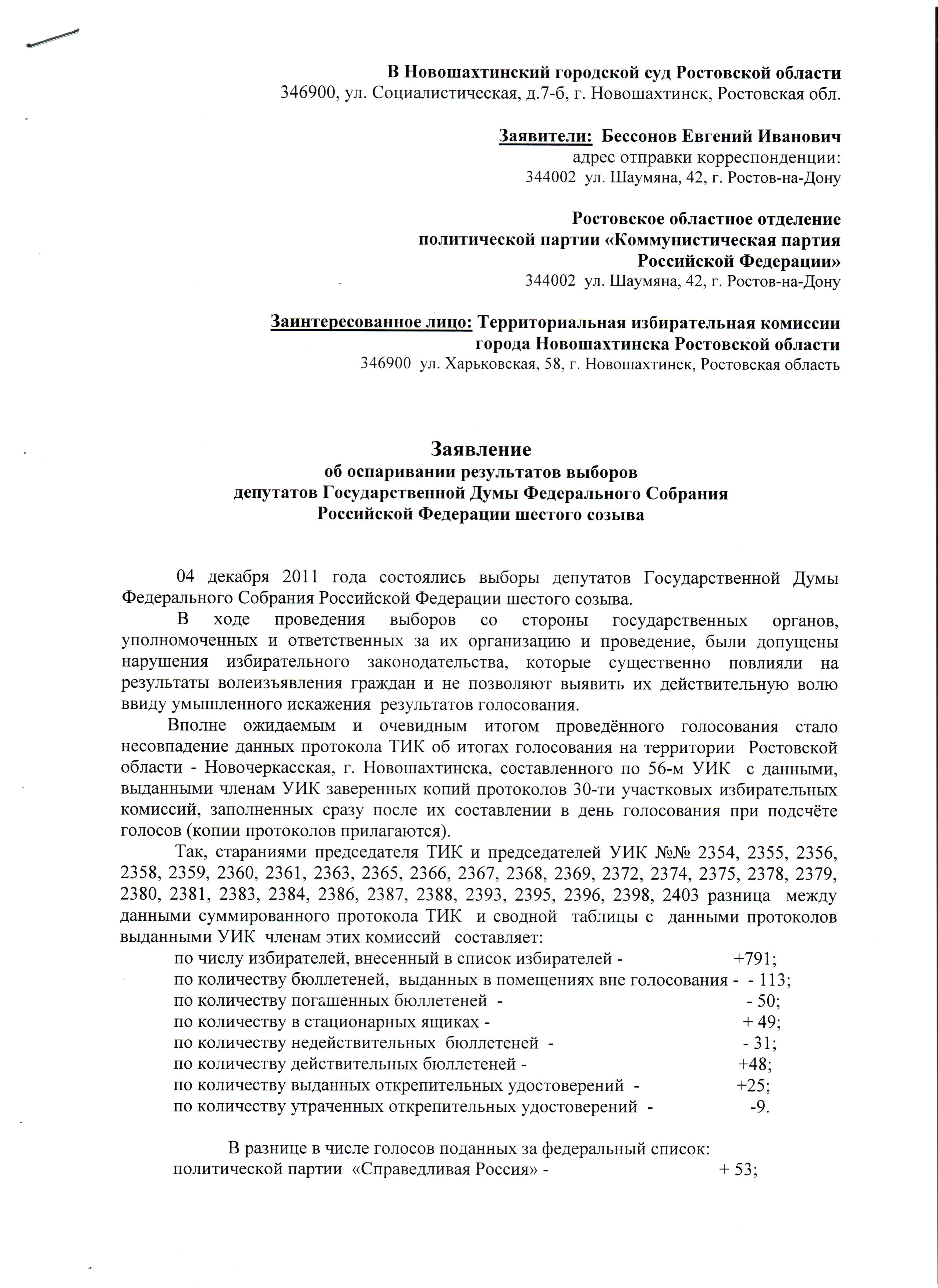 Коммунисты обратились в суд по вопросу пересчета итогов выборов
